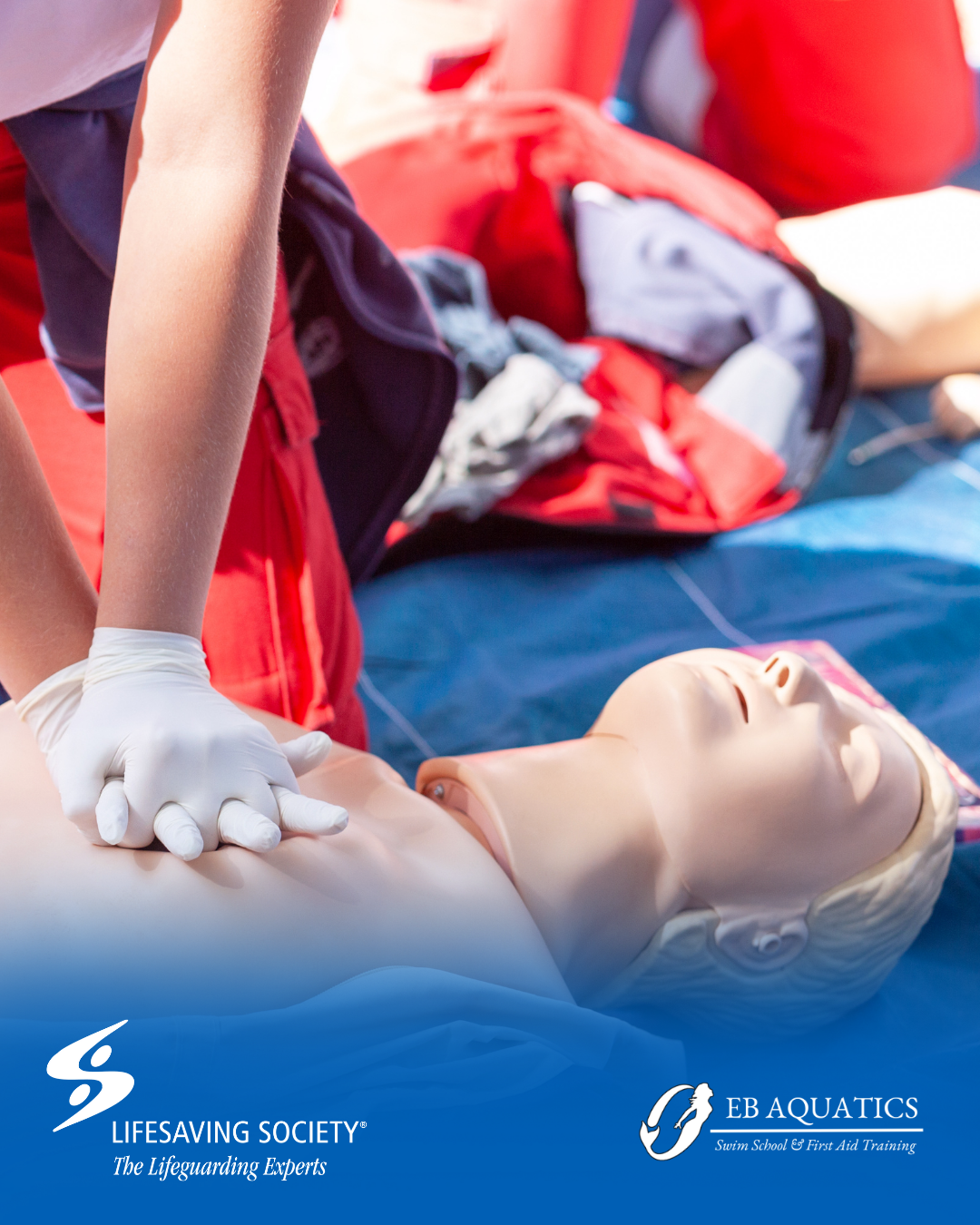EB Aquatics offers Lifesaving Society First Aid and CPR programs designed to build confidence and preparedness for real-life emergencies. Our hands-on training is ideal for families, caregivers, aquatic professionals, and workplaces, with a strong focus on prevention, practical skills, and water safety.